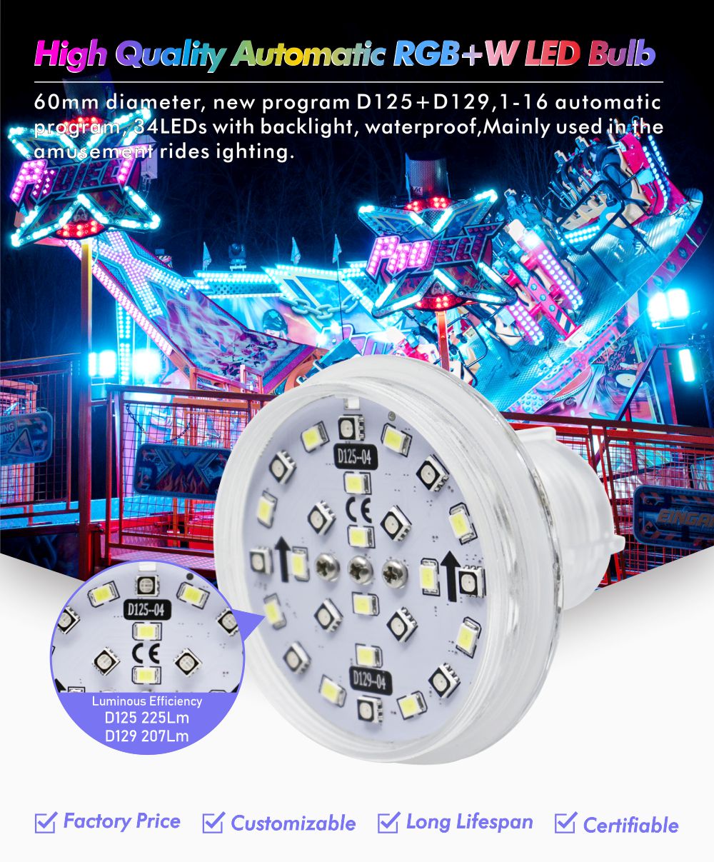 亿佳照明新D125+D129自动程序60mm RGB+W LED像素凸圆涡轮,3PIN,用于娱乐照明,旋转木马,摩天轮等
