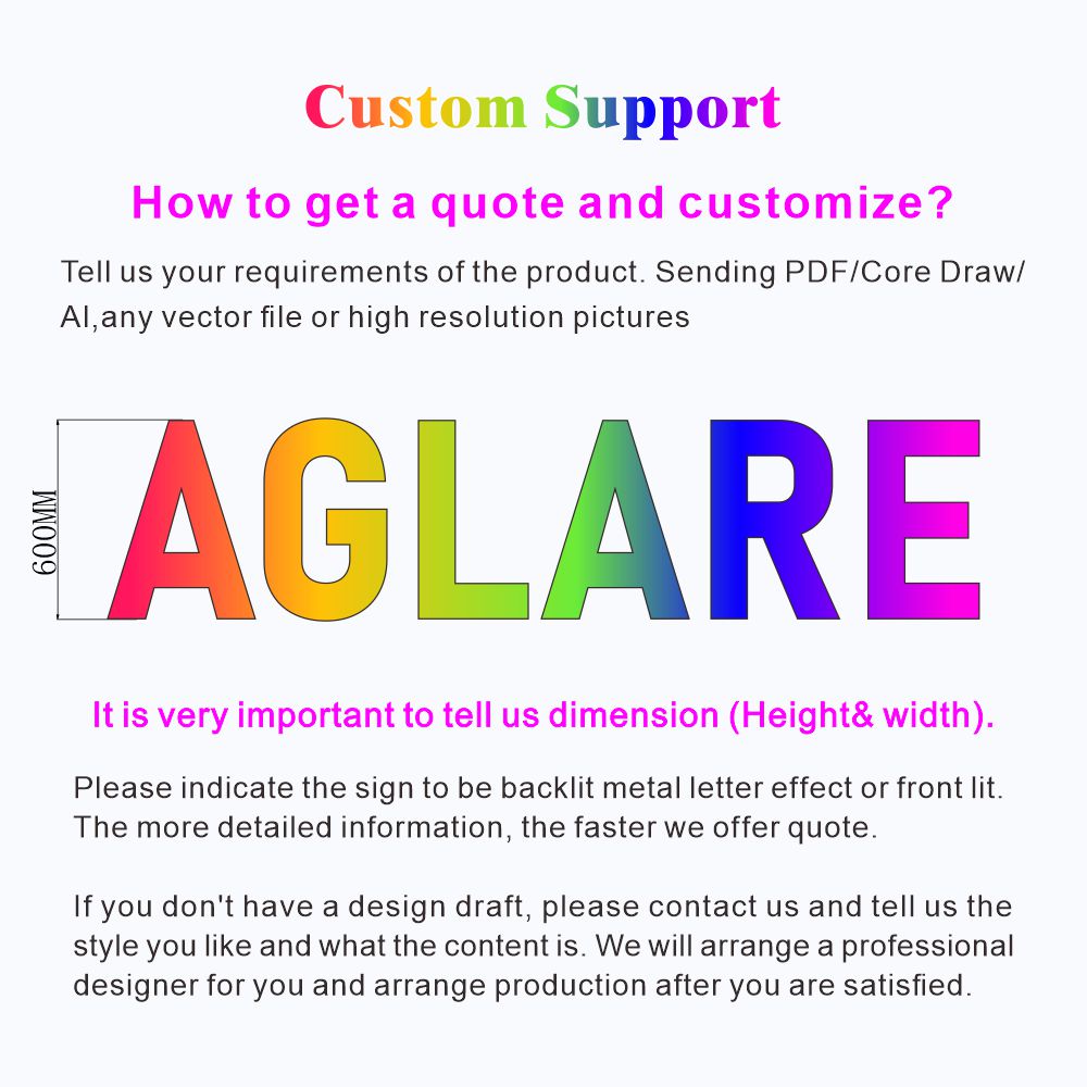 将这些彩色亚克力LED发光字放置在您的活动、商店、游乐园或嘉年华上,打造炫酷效果!请将您的图纸/图稿/想法发送给我们,我们为您设计。